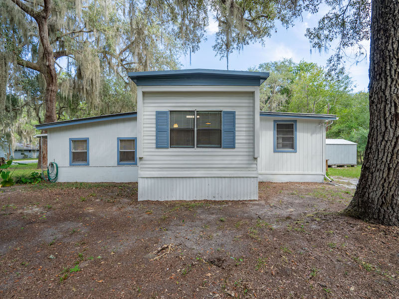 Located in the Lakeview Manor subdivision with deeded Pegram Lake access just across the street, this property offers a fenced and gated .44-acre treed lot with beautiful landscaping and plenty of room to enjoy the outdoors. The original mobile home was built in 1980 and includes 672 sq ft, 2 bedrooms, and 1 bathroom, but has been expanded with two attached additions: one measuring 14’x20’ and another 29’x18’ with two rooms. Together, these spaces provide a total of 1,312 sq ft of living area with flexible options for bedrooms, office, or den. Inside, the updated kitchen features abundant oak cabinetry, Formica countertops, appliances, and a built-in area for microwave and storage. The home includes fresh paint, laminate and tile flooring, and updated electrical. Outside updates include fresh exterior paint, metal roof, and HVAC system (approx. 10 years old). Two storage sheds provide utility space; one includes a laundry room with full hookups. Conveniently located just 10 minutes from downtown Fort McCoy for groceries, pharmacy, gas, and dining. A short drive brings you to Silver Springs for big-box shopping and restaurants, and Ocala is only another 10 minutes away with additional entertainment options. Gainesville is an easy 50-minute drive. For outdoor enthusiasts, this location is minutes from the Ocklawaha River, Ocala National Forest, and natural springs including Salt Springs, Silver Glen, and Juniper Springs. The area is perfect for fishing, hunting, hiking, horseback riding, canoeing, kayaking, and off-road trail adventures. This is a one-of-a-kind property offering space, upgrades, and a peaceful lake community setting—ready for new owners!